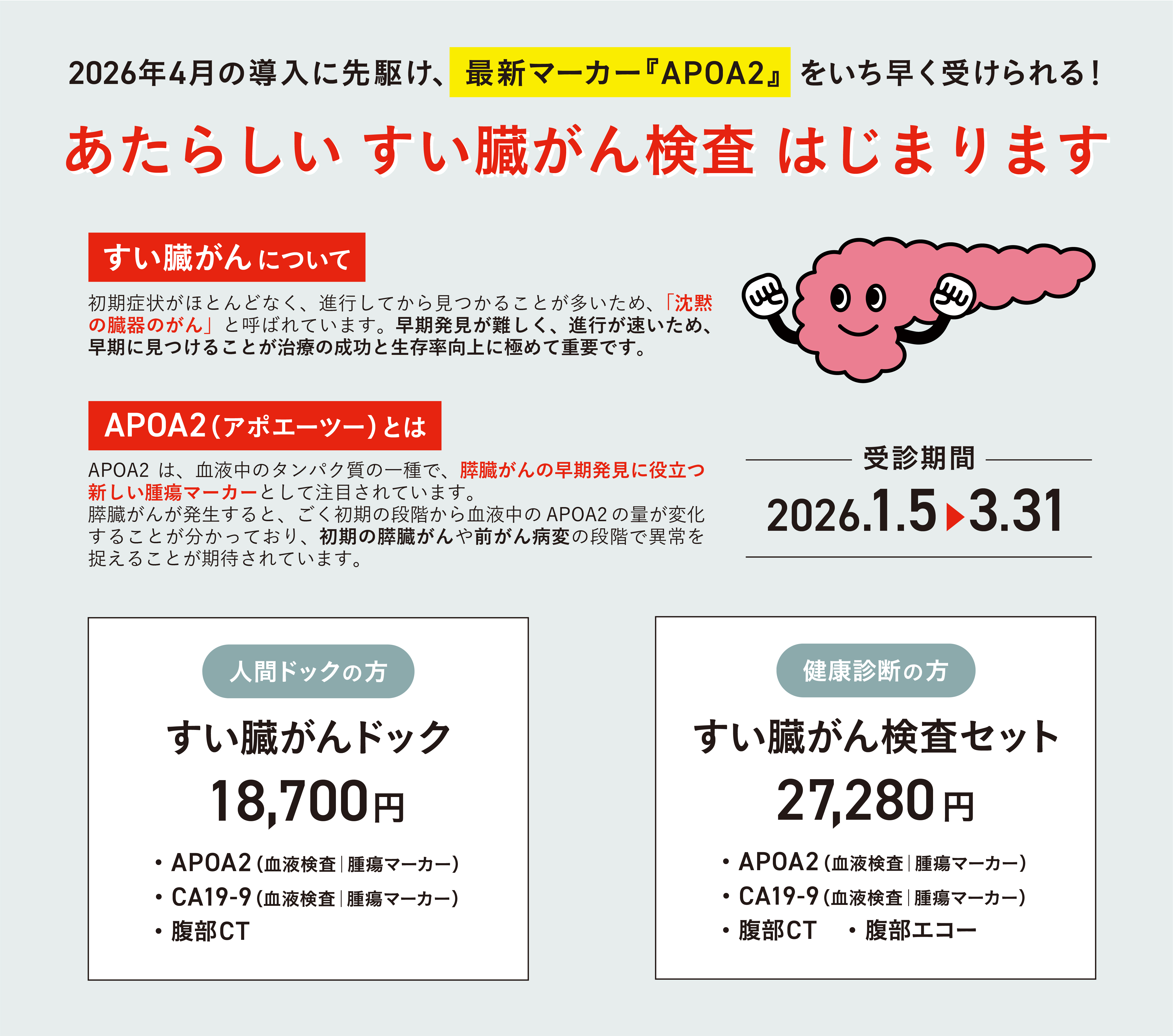 メディメッセ桜十字予防医療センターでは、2026年1月5日より「すい臓がん検査」を開始しました。